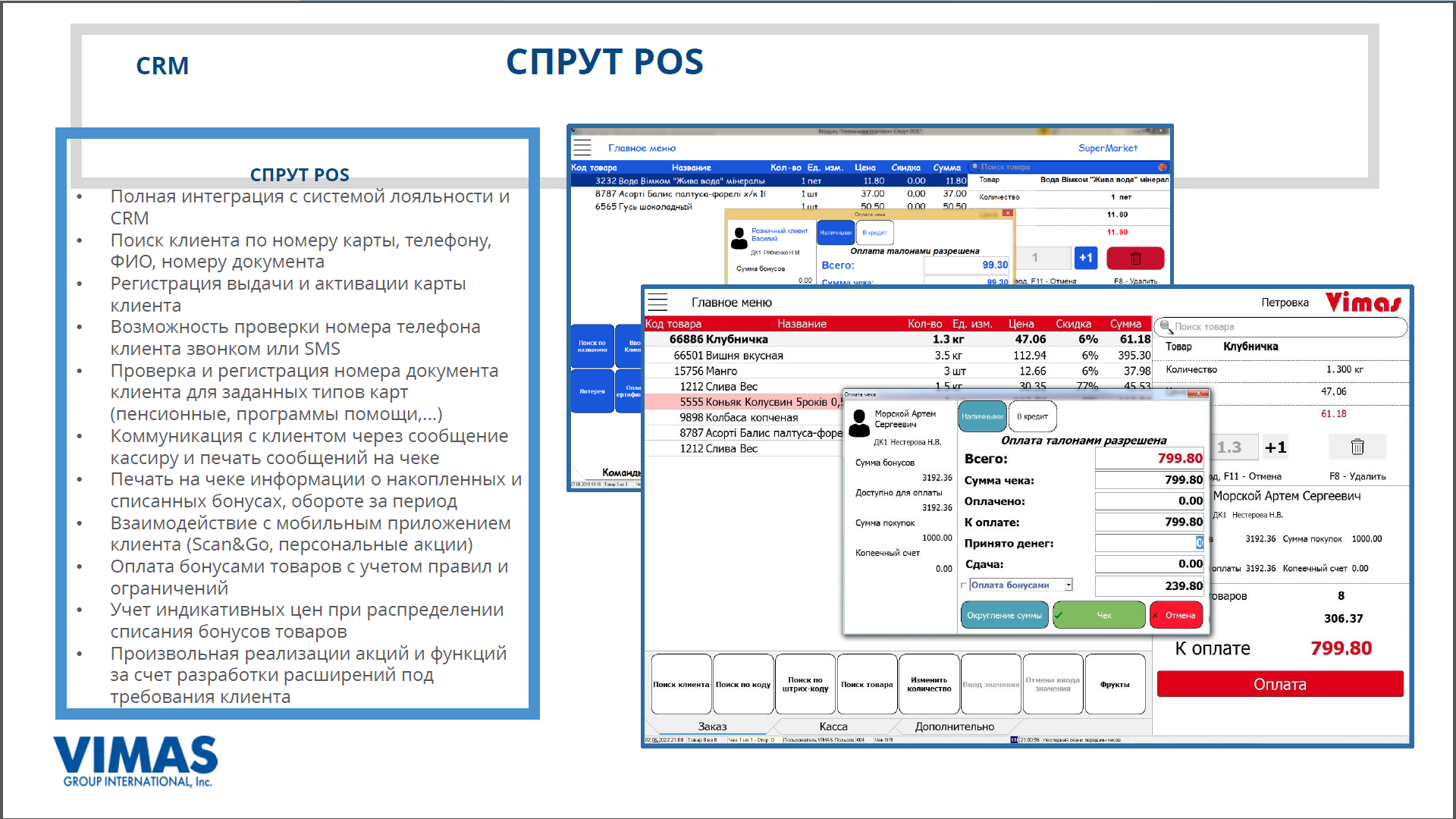 • Возможность реализации весового контроля товаров в чеке.Полная поддержка системы лояльности торговой сети.